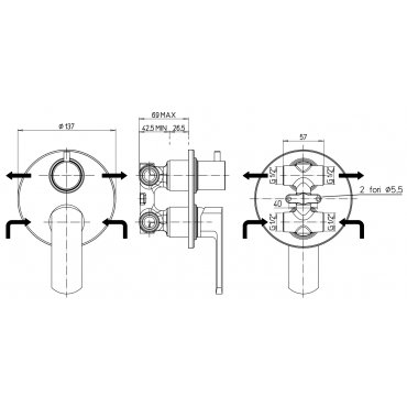 • GABOLI FRATELLI H2Q DUSCHEMISCHER MIT 4-FACH-UMSTELLER