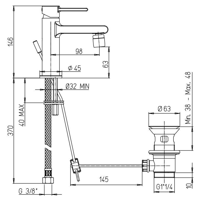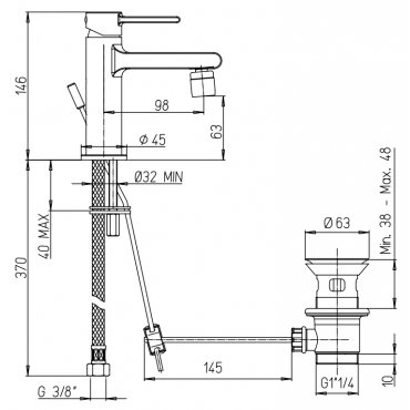 PAINI GHIBLI BIDETMISCHER AB- UND ÜBERLAUFGARNITUR