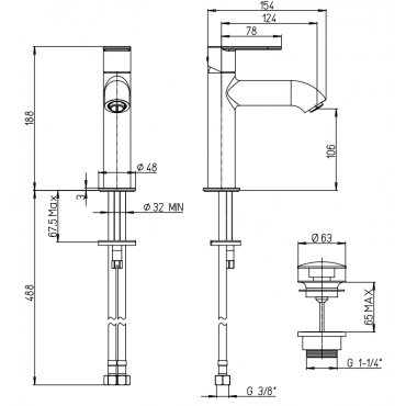 GABOLI FRATELLI NEW SPACE WASCHTISCHMISCHER MIT AUSLAUF UND 70 MM VERLÄNGERUNG