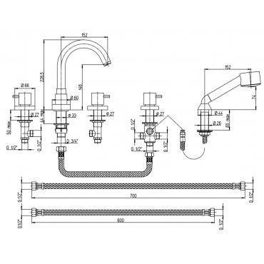 BEAMTECH APP 4-LOCH WANNENRANDBATTERIE MIT EDELSTAHLAUSLAUF UND HANDBRAUSE