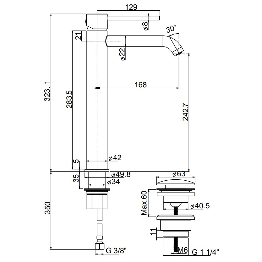 PAINI COX WASCHTISCHMISCHER, HOHE AUSFÜHRUNG, AB- UND ÜBERLAUFGARNITUR