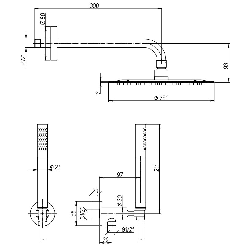 PAINI COX BRAUSESET MIT KOPFBRAUSE, BRAUSEARM UND BRAUSEGARNITUR MIT HALTERUNG