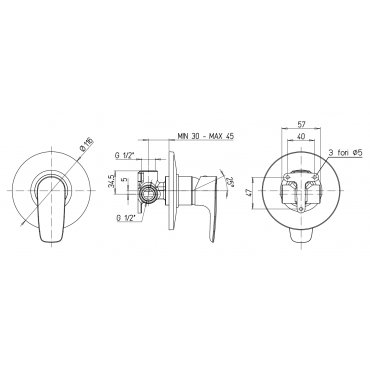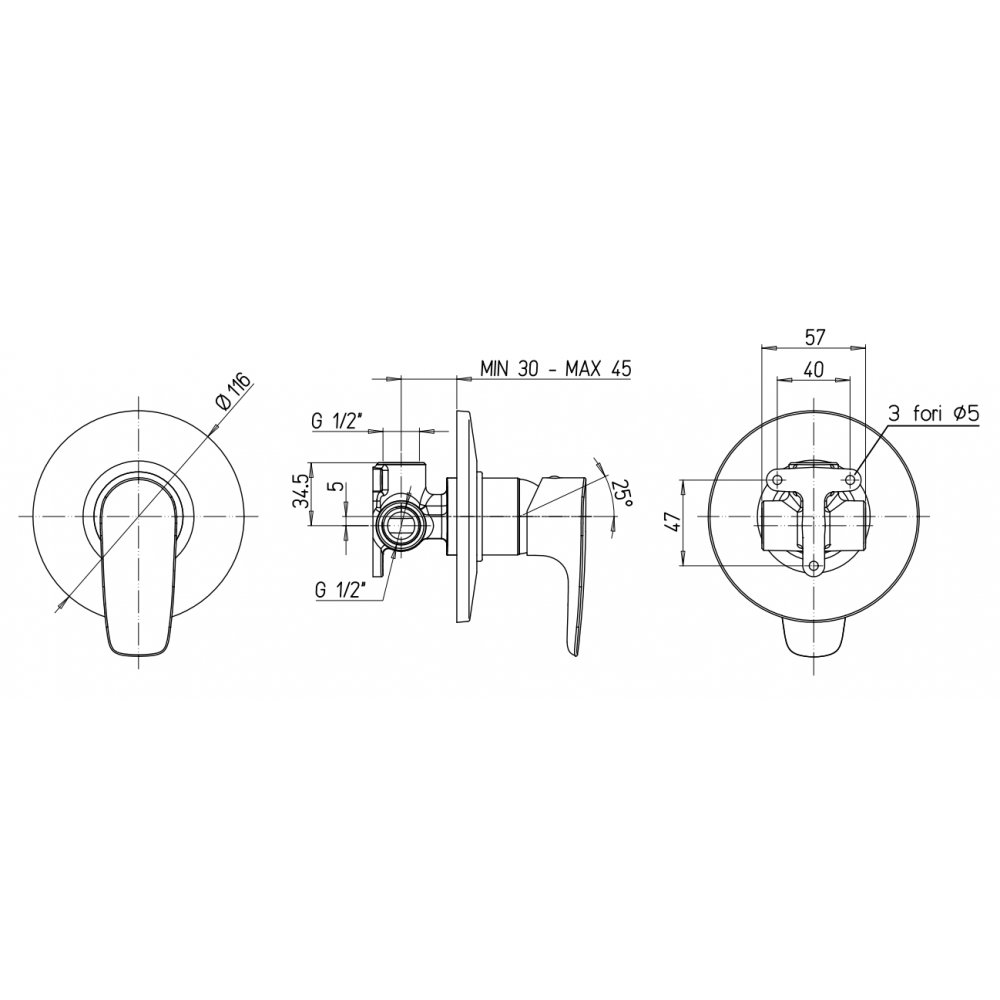 • IB RUBINETTERIE BRERA 3-WEGE-UNTERPUTZ-BRAUSEBATTERIE MIT BRAUSEGARNITUR NICKEL