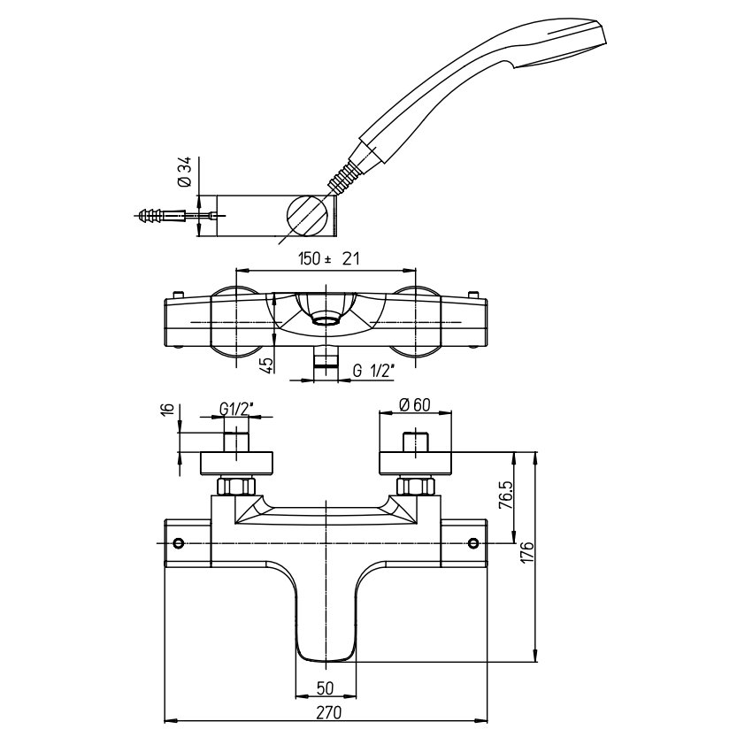 GABOLI FRATELLI H2Q BADEWANNE AUFPUTZ MIT HALTERUNG UND HANDBRAUSE