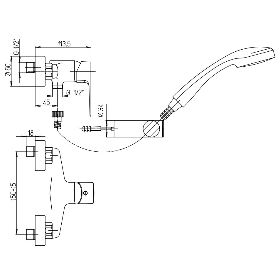 GABOLI FRATELLI OPEN SPACE BADEWANNE AUFPUTZ MIT HALTERUNG UND HANDBRAUSE