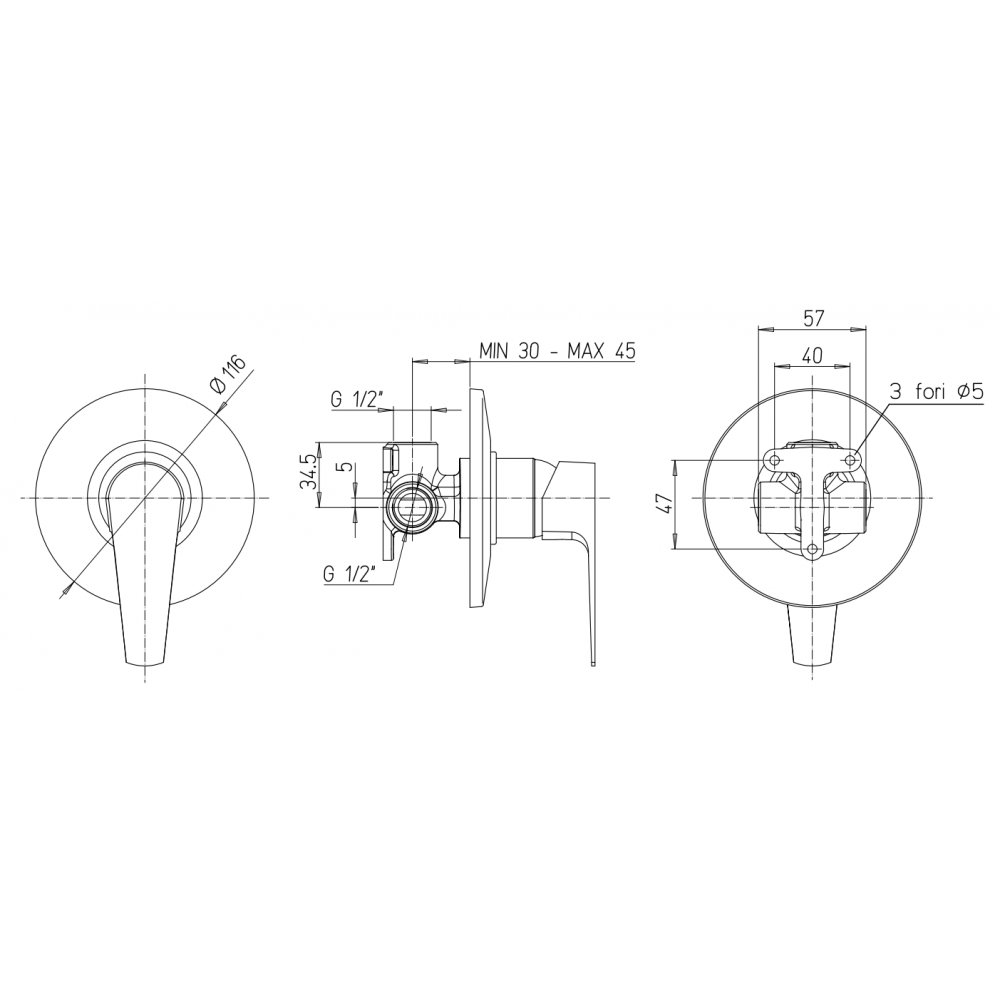TREEMME RAN UNTERPUTZ-EINHANDBATTERIE MIT UMSTELLER 3 ABGÄNGE CHROM