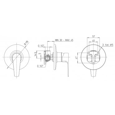 • TREEMME RAN UNTERPUTZ-EINHANDBATTERIE MIT UMSTELLER 3 ABGÄNGE CHROM