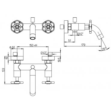 BUGNATESE MORSE EXPONIERTE BADEWANNENARMATUR MIT DUPLEX CHROM