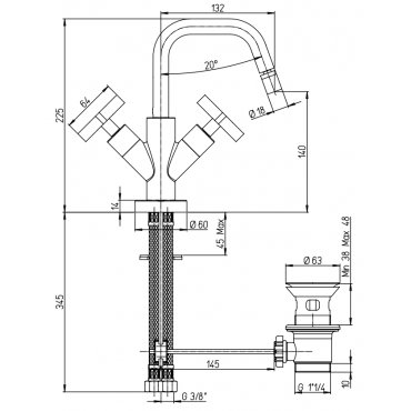 PAINI GHIBLI BIDETMISCHER AB- UND ÜBERLAUFGARNITUR