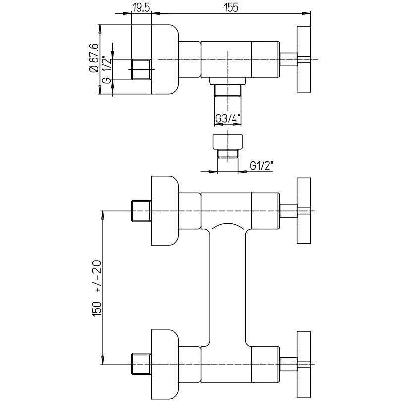 BUGNATESE STONE AUSSENBATTERIE FÜR BADEWANNE MIT VERCHROMTEM DUPLEX