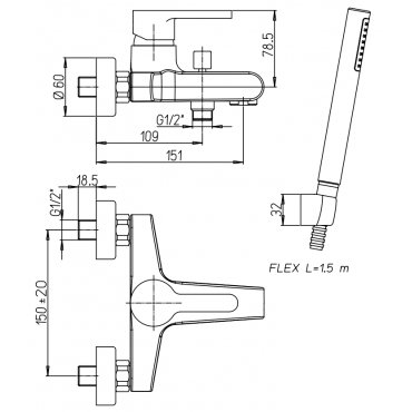 GABOLI FRATELLI SOPHIE BADEWANNENMISCHER MIT HALTERUNG UND DUSCHVORRICHTUNG