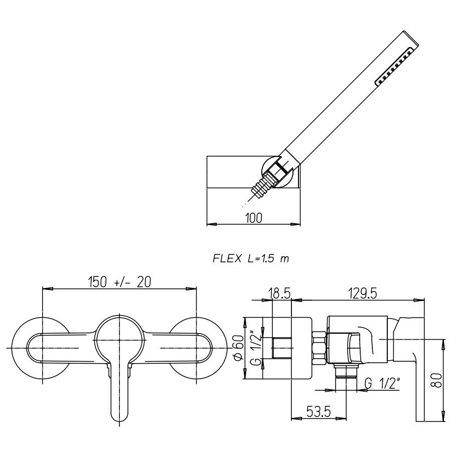 PAINI ARENA BRAUSEMISCHER MIT BRAUSEGARNITUR, BRAUSEHALTER VERSTELLBAR