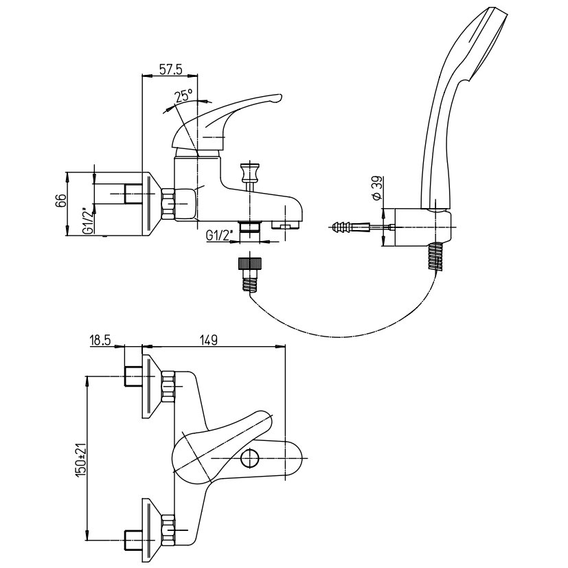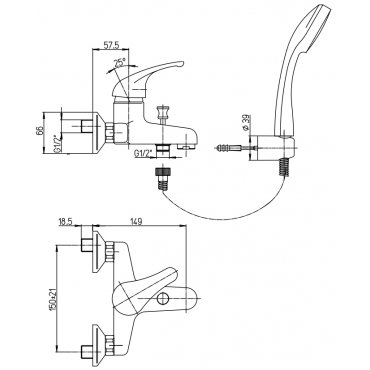 NEWFORM ERGO-Q BADEWANNENGRUPPE MIT FESTER STÜTZE UND HANDBRAUSE CHROM