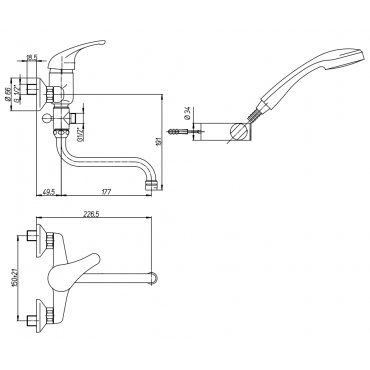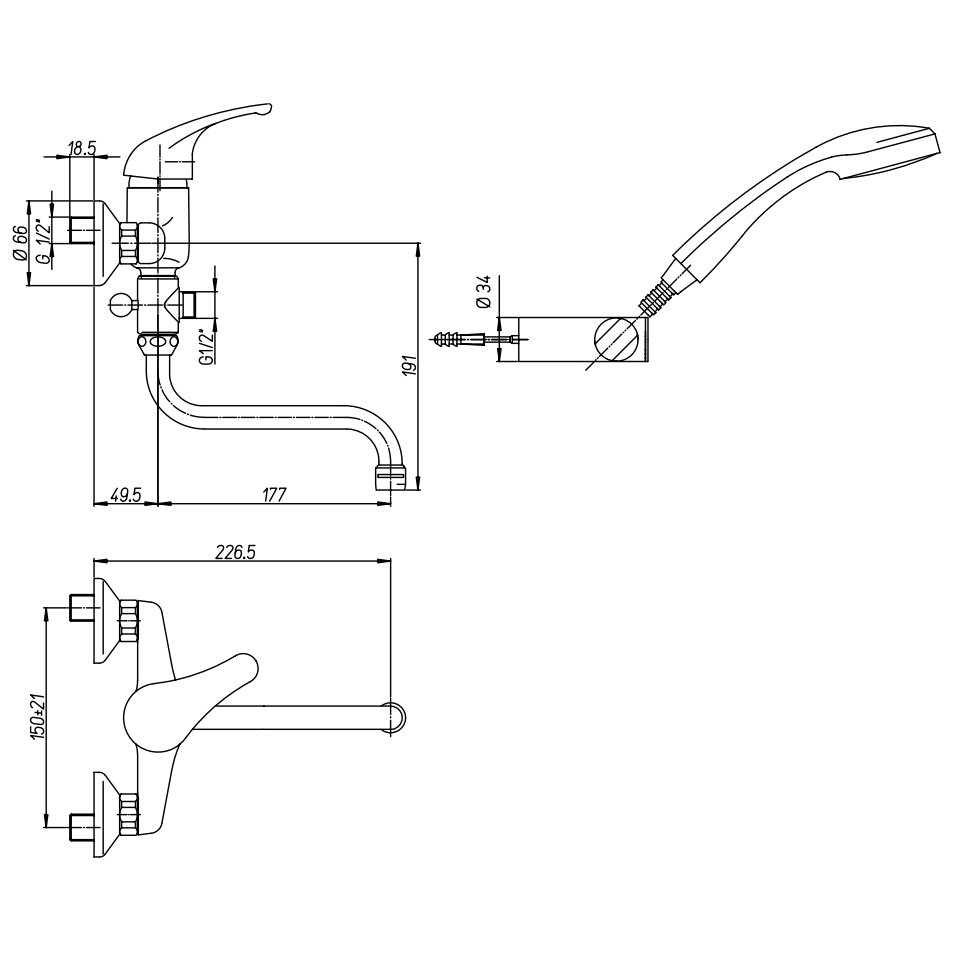 PAINI CRETA 100 BADEMISCHER MIT UMSTELLUNG UND BRAUSEGARNITUR, BRAUSEHALTER VERSTELLBAR