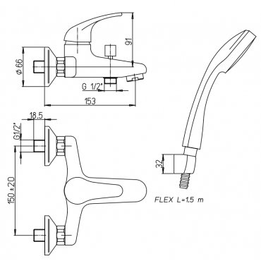 GABOLI FRATELLI H2Q BADEWANNE AUFPUTZ MIT HALTERUNG UND HANDBRAUSE