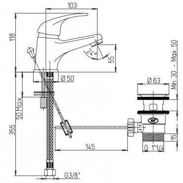 PAINI JOLLY WASCHTISCHMISCHER AB- UND ÜBERLAUFGARNITUR