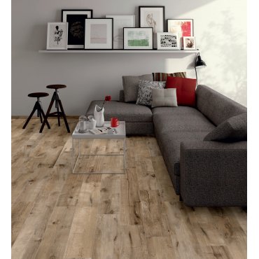 Porzellanstein in Holzoptik, inspiriert von nordamerikanischen Szenarien.