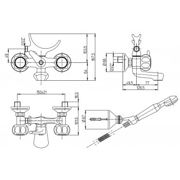 IB RUBINETTERIE K2 WANDDUSCHE KOMPLETT MIT BRAUSEGARNITUR CHROM
