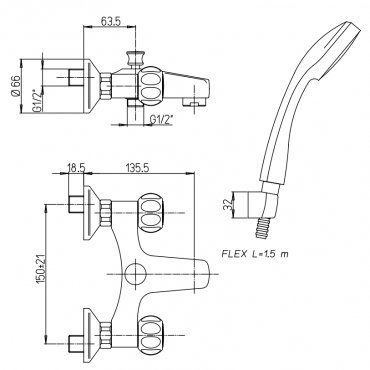 • GABOLI FRATELLI OPEN SPACE BADEWANNE AUFPUTZ MIT HALTERUNG UND HANDBRAUSE