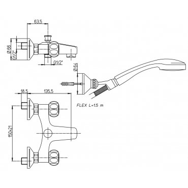 • IB RUBINETTERIE MILANOTORINO AUSSENBRAUSEBATTERIE MIT BRAUSEGARNITUR CHROM