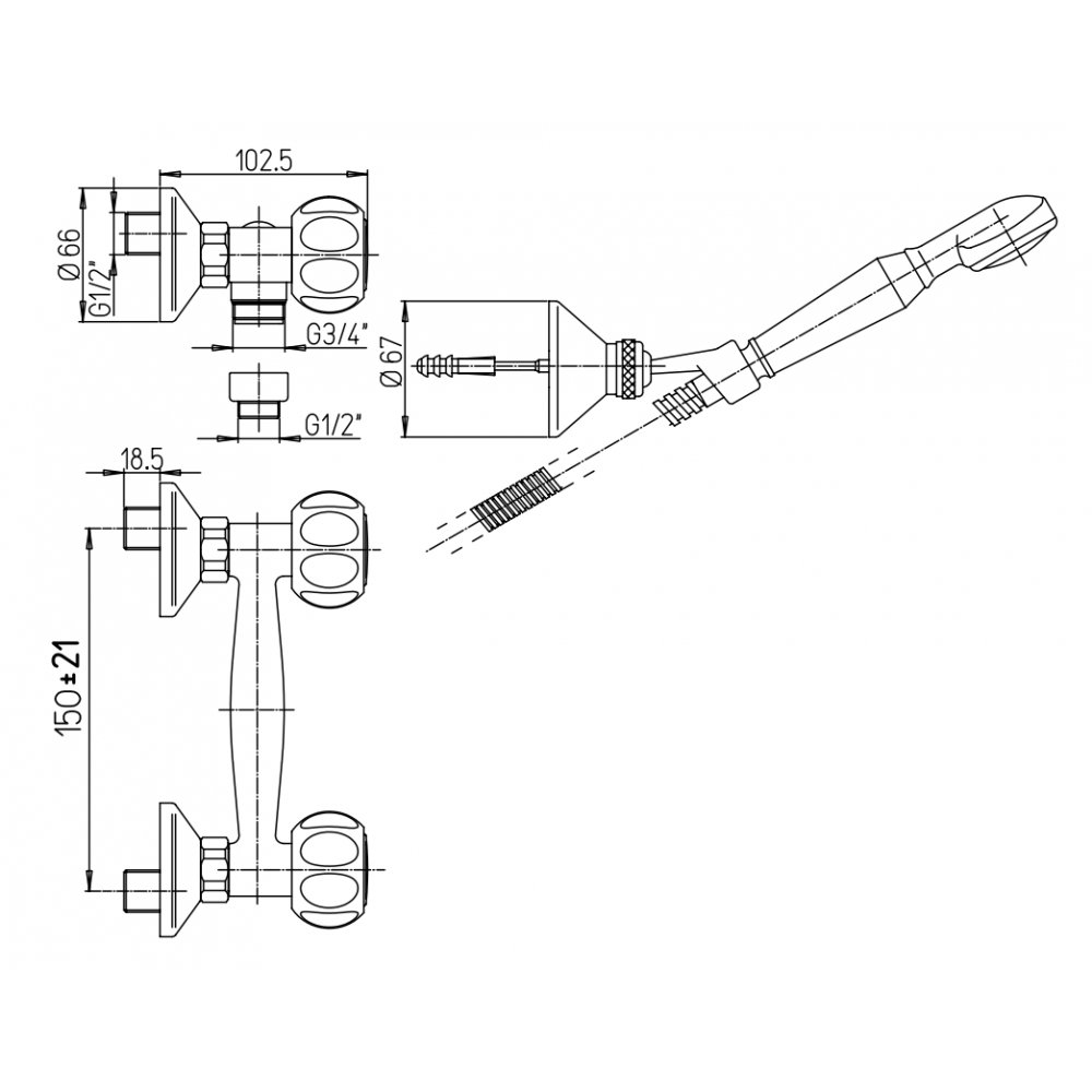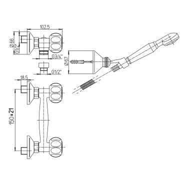 PAINI ARNO BRAUSEMISCHER MIT BRAUSEGARNITUR, BRAUSEHALTER VERSTELLBAR