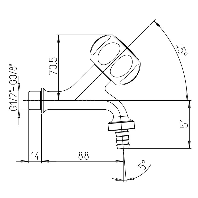 • PAINI LIBERTY STANDVENTIL 3/8” MIT ROHR-VERBINDUNG