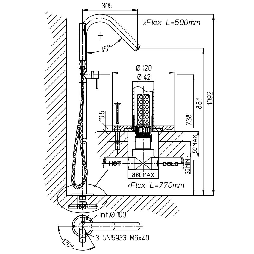 • IB RUBINETTERIE K2 BODENSTEHENDER BADEWANNENRAND MIT VERCHROMTEM DUSCHSET