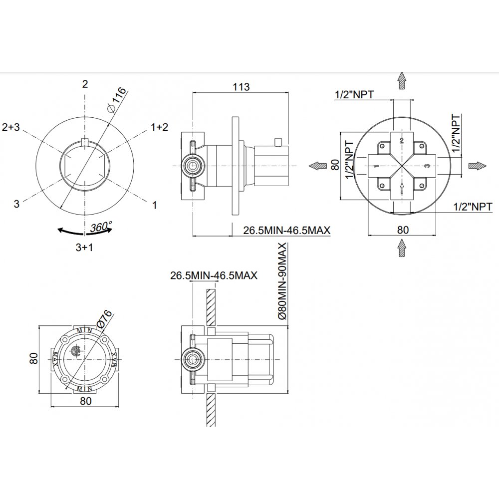 PAINI DREHUMSTELLER FÜR UP-EINBAU, 3 WEGE