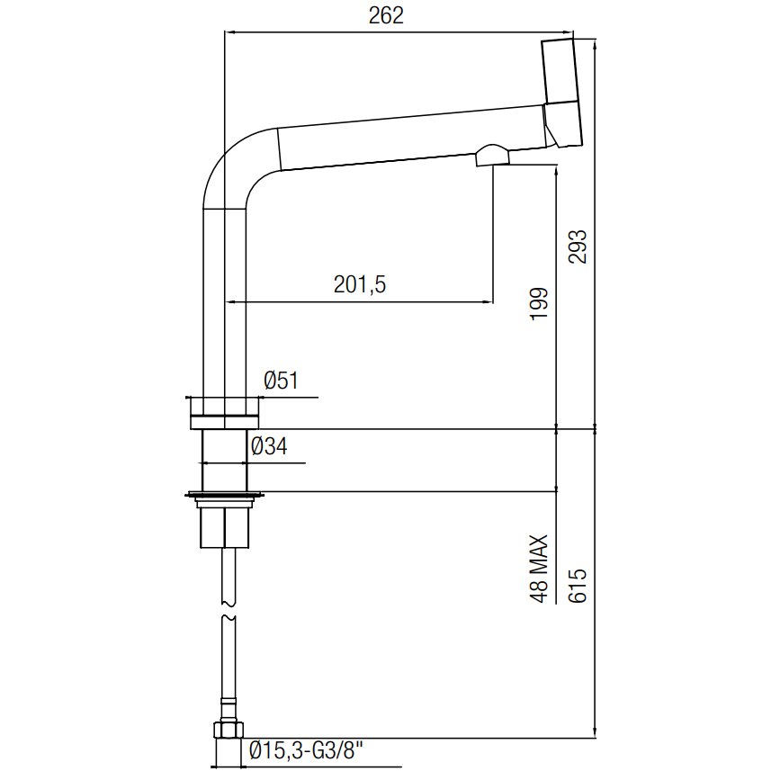 QUADRO DESIGN BRASS KÜCHENARMATUR MIT AUSZIEHBARER HANDBRAUSE H 240