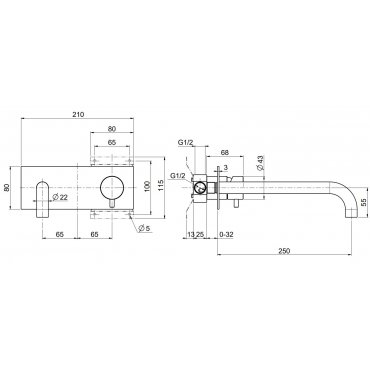 QUADRO DESIGN SOURCE 2-LOCH-WANDBATTERIE MIT 250 MM LAUF
