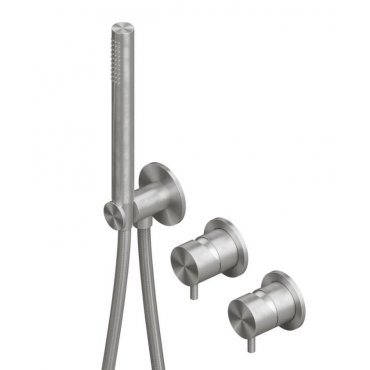 Wandarmaturen der Gruppe 2 mit Stahlbrausegarnitur.
