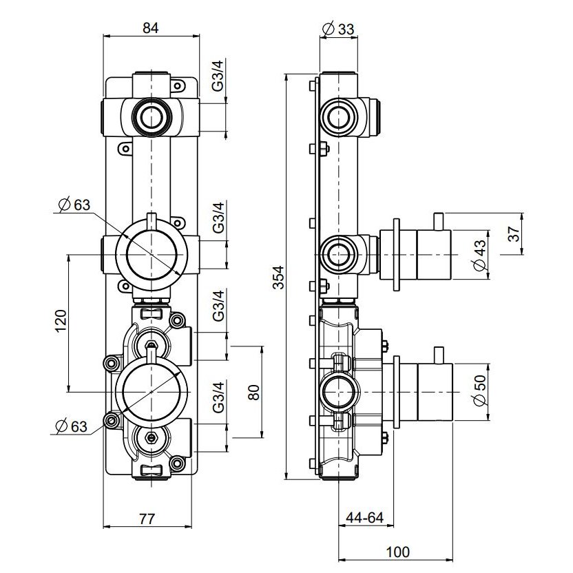 Mischereinheit 3/4 mit 1 Absperrhahn.