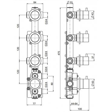 • NEWFORM LINFA II THERMOSTATISCHER UNTERPUTZMISCHER MIT 3 ABGÄNGEN