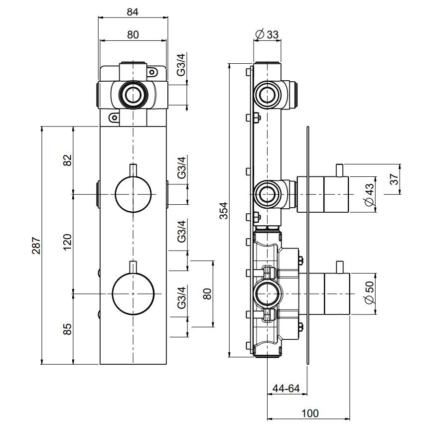 QUADRO DESIGN SOURCE THERMOSTAT-WANDBATTERIE MIT ABSPERRHAHN
