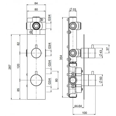 Mischereinheit 3/4 mit 1 Absperrhahn.