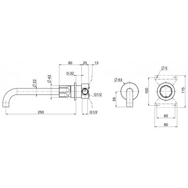 QUADRO DESIGN MODO 2-LOCH-WANDBATTERIE MIT 250 MM LAUF