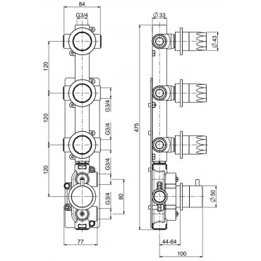 QUADRO DESIGN HB THERMOSTAT-WANDBATTERIE MIT 3 ABSPERRVENTILEN