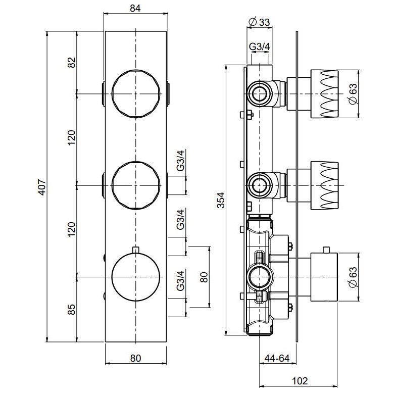 GABOLI FRATELLI THERMO.LINE THERMOSTATISCHE BRAUSEBATTERIE 2 AUSGÄNGEN