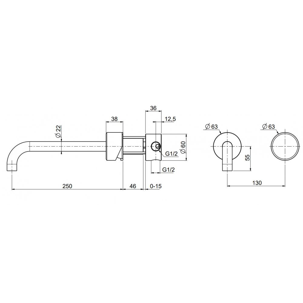 QUADRO DESIGN STEREO 2-LOCH-WANDBATTERIE MIT 250 MM LAUF