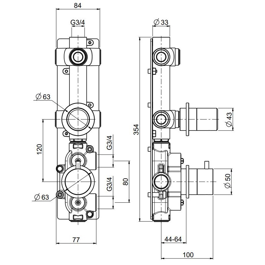 Thermostatische Mischeinheit 3/4 mit 1 Absperrventil.