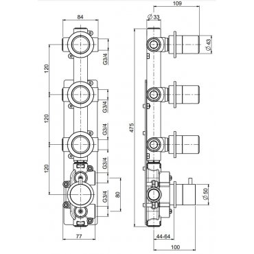 BOSSINI OKI THERMOSTAT-MISCHBATTERIE 3 EINZELPLATTEN FÜR AUFPUTZ MIT 4 AUSGANGE