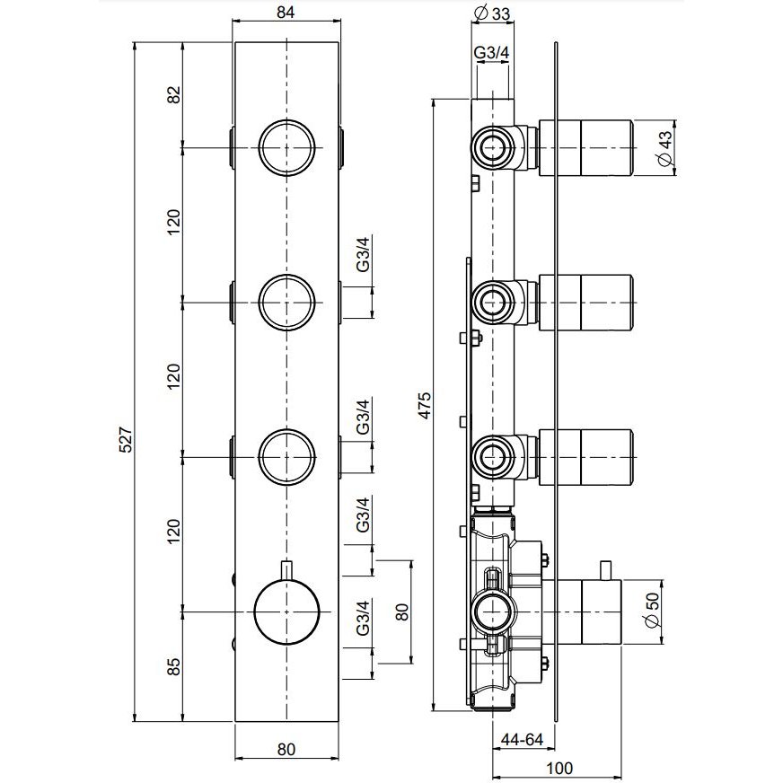 • GABOLI FRATELLI THERMO.LINE BRAUSEBATTERIE FÜR AUFPUTZARMATUR FÜR SÄULE