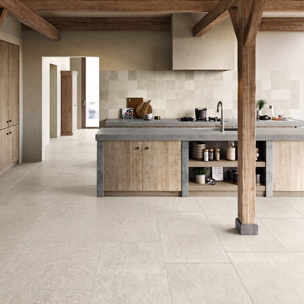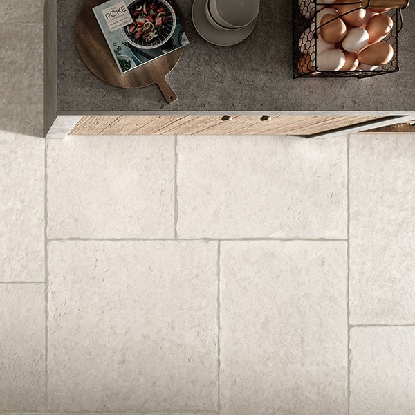 Die vier Farben Taupe, Grey, Beige und White sind in den Größen 60X60 - 80X80 - 60X120 erhältlich, aber auch in verschiedenen Größen und Mosaiken in getrommeltem Finish, die in Kombination mit der Dekoration Traces ein personalisiertes und exklusives Ergebnis garantieren.