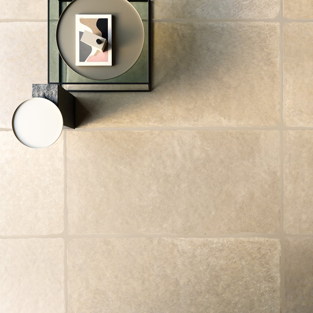 Die vier Farben Taupe, Grey, Beige und White sind in den Größen 60X60 - 80X80 - 60X120 erhältlich, aber auch in verschiedenen Größen und Mosaiken in getrommeltem Finish, die in Kombination mit der Dekoration Traces ein personalisiertes und exklusives Ergebnis garantieren.