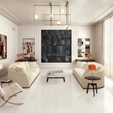 Die Kollektion Gemme von Serenissima ist eine Serie von Feinsteinzeugfliesen mit einer polierten Oberfläche in Marmoroptik.