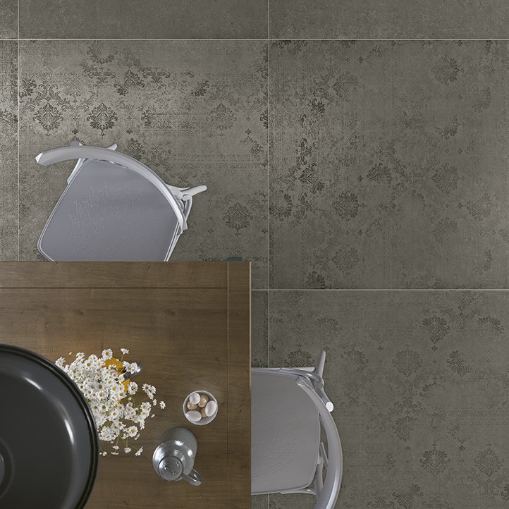 Große und kleine Flächen in sechs trendigen Farben verführen mit Metallic-Effekten und Retro-Dekoren, die die Vielseitigkeit und die hervorragenden Leistungen des Feinsteinzeugs ergänzen.