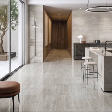 Prestigio Travertino von Ceramiche Refin entstand aus der Suche nach dem richtigen Material, um der Kollektion Leben einzuhauchen.