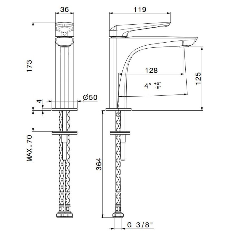 NEWFORM DELTA ZERO WASCHBECKENARMATUR OHNE ABLAUFGARNITUR CHROM