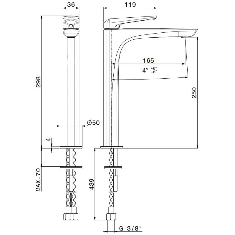 NEWFORM DELTA ZERO HOHE WASCHTISCHBATTERIE OHNE ABLAUFGARNITUR CHROM
