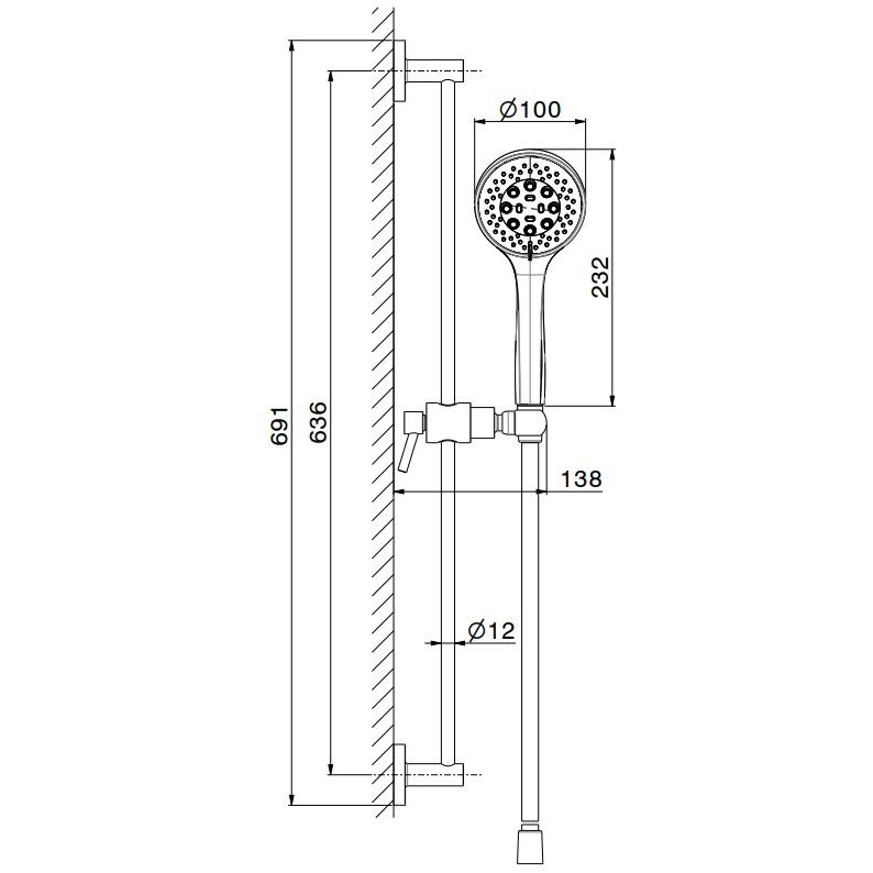 NEWFORM DELTA ZERO GLEITENDE SCHIENE MIT 3-STRAHL-HANDBRAUSE UND FLEXIBLEM SCHLAUCH